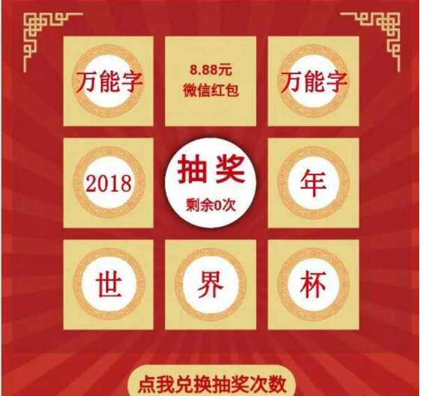 比方,消費(fèi)者掃碼查防偽、檢查商品信息后,點(diǎn)開卡片,就會(huì)呈現(xiàn)“2018”、“年”、“世”、“界”、“杯”中的任意一個(gè)字。每集滿3個(gè)相同字,能夠抽1次獎(jiǎng);集齊5個(gè)字,則能夠免費(fèi)兌換世界杯賽事門票1張。(抽獎(jiǎng)次數(shù)不限,促進(jìn)消費(fèi)者多買產(chǎn)品多掃碼)